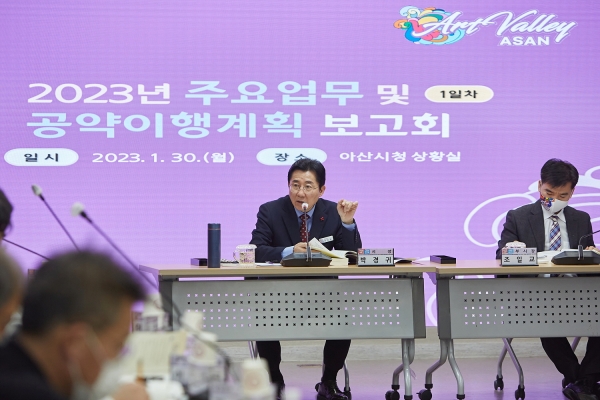 [충청뉴스큐] 아산시가 지난 30일과 31일 2일간 ‘2023년도 주요업무 및 공약이행계획 보고회’를 통해 내실 있고 성공적인 시정 운영을 추진한다.