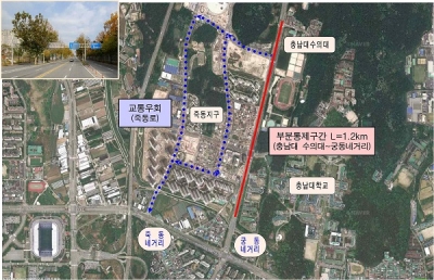 [충청뉴스큐] 대전시는 유성대로 궁동네거리와 충남대 수의대 구간의 도로구조 개선사업 공사를 본격 추진한다고 20일 밝혔다.