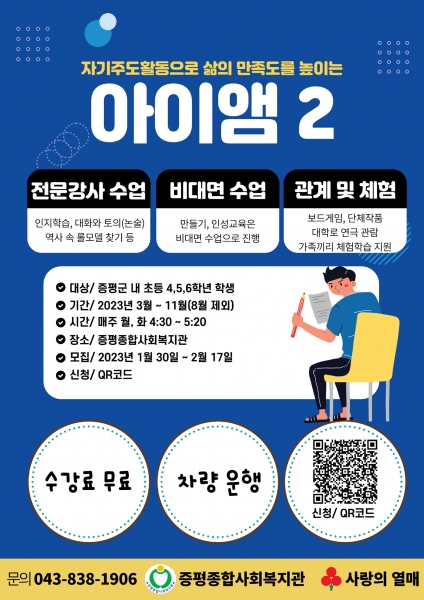 [충청뉴스큐] 증평종합사회복지관은 아동 자기주도 활동사업인 “아이앰 시즌 2”를 운영한다.
