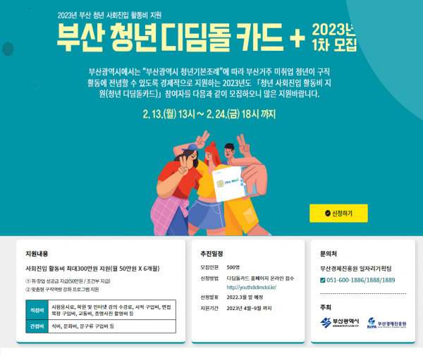 [충청뉴스큐] 부산시는 오늘부터 ‘2023 제1차 청년 사회진입활동비 지원 사업’ 대상자를 모집한다고 밝혔다.