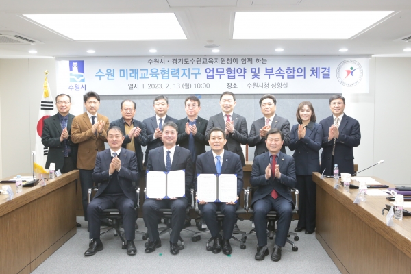 [충청뉴스큐] 경기도수원교육지원청은 13일 수원시와 ‘미래교육협력지구’운영을 위한 업무협약을 맺고 세부 교육사업에 대한 부속합의를 체결했다.