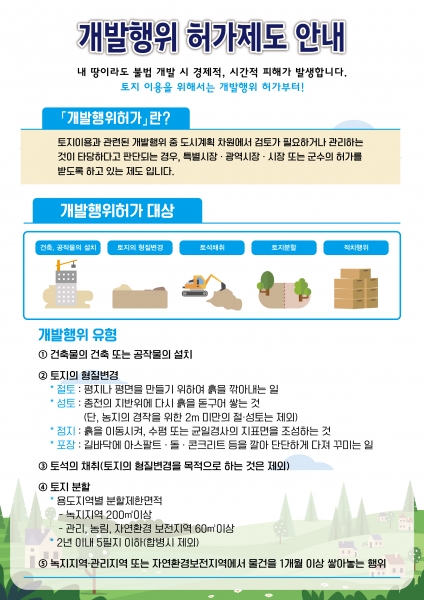 시 관계자는 “개발행위 허가는 난개발 방지와 환경보전 등을 위해 법적으로 다루는 부분이니 만큼, 반드시 이행해 주시기 바란다”고 당부했다.