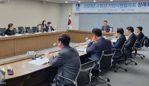수원시는 14일 시청 상황실에서 ‘2023 수원시 기업지원협의회 정례회의’를 열고 ‘2022년 중소기업육성기금 결산’을 심의했다.