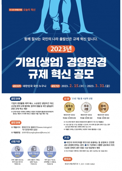 [충청뉴스큐] 화성시가 행정안전부와 함께 ‘기업 경영환경 규제 개선과제’를 오는 3월 31일까지 모집한다.