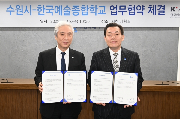 [충청뉴스큐] 수원시와 한국예술종합학교는 15일 수원시청 상황실에서 업무협약을 체결하고 문화예술 분야 교류를 활성화하기로 했다.