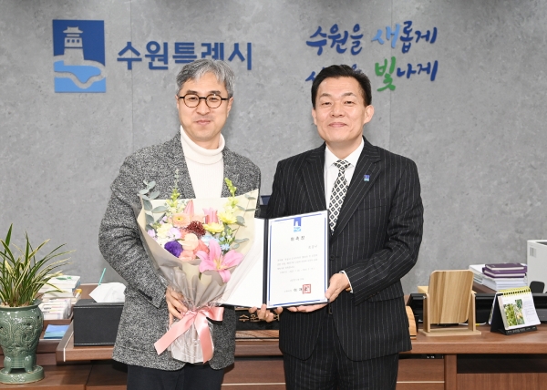 이재준 수원특례시장은 15일 집무실에서 홍경구 교수에게 위촉장을 수여했다.