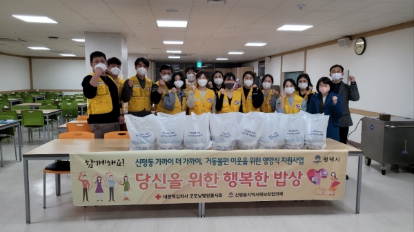 [충청뉴스큐] 평택시 신평동 지역사회보장협의체와 굿모닝병원봉사회는 지난 15일 거동이 불편한 복지 사각지대 이웃 15세대에 정성으로 마련한 영양식을 전달했다.