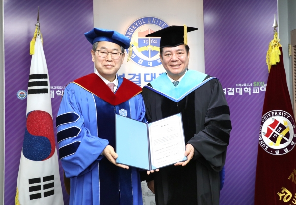 이날 성결대학교 재림관 8층에서 열린 학위 수여식은 김상식 성결대학교 총장을 비롯한 정희석 부총장, 윤민영 교학부총장 등 학교 관계자가 참석한 가운데 진행됐다.