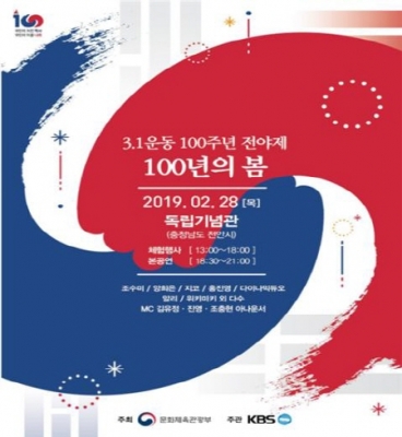 [충청뉴스큐] 문화체육관광부는 한국방송공사와 함께 오는 28일 오후 6시 30분부터 천안 독립기념관에서 3.1운동 100주년을 기념하는 전야제를 개최한다.