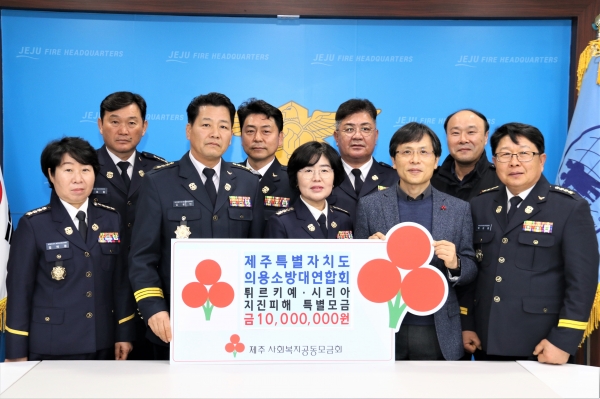 [충청뉴스큐] 제주특별자치도 의용소방대연합회가 지진으로 큰 피해를 입은 튀르키예 이재민을 돕기 위해 성금 1,000만원을 기부했다.