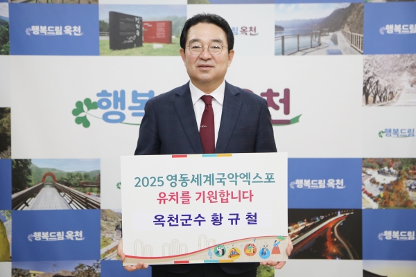[충청뉴스큐] 황규철 옥천군수는 맹경재 충북경제자유구역청장의 지명을 받아 17일 ‘2025년 영동세계국악엑스포 유치 기원 챌린지’에 동참했다.