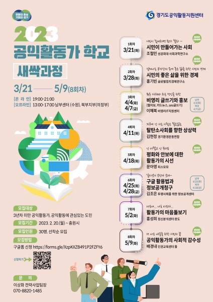 [충청뉴스큐] 경기도공익활동지원센터는 공익활동가 양성과 신규활동가의 역량 강화를 위한 ‘2023 공익활동가학교-새싹 과정’의 참여자를 모집한다.