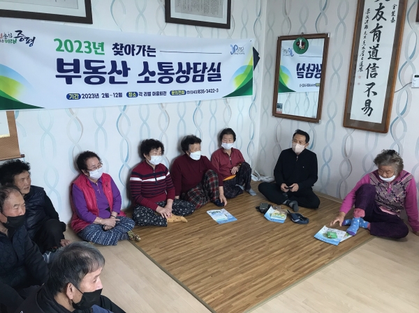 군은 지난 15일 노암2구 경로당에서 소통상담실을 운영해 토지분야 신청서 접수와 부동산 생활 상담 진행으로 호평을 받았다.