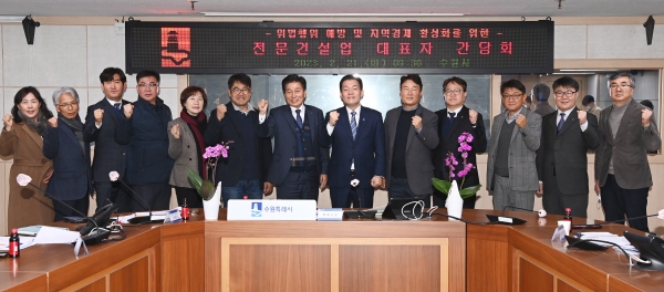 [충청뉴스큐] 수원시는 21일 시청 재난안전상황실에서 ‘전문건설업 대표자 간담회’를 열고 전문건설업계의 건의사항을 들었다.