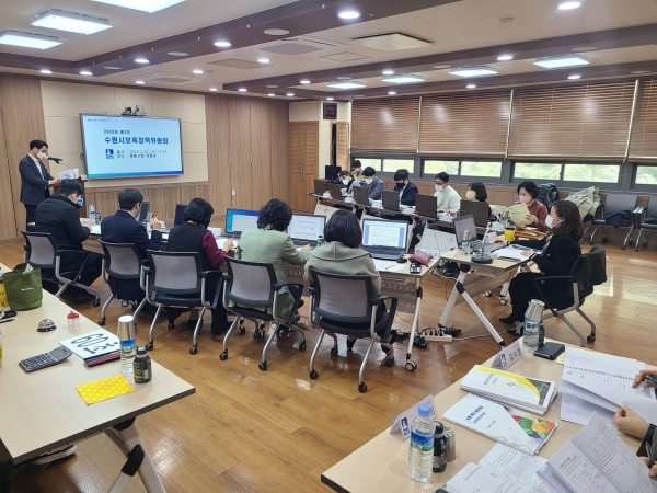 [충청뉴스큐] 수원시는 22일 영통구청 상황실에서 ‘2023년 제2차 수원시보육정책위원회’를 열고 연도별 보육계획 등을 심의했다.