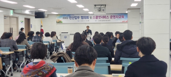[충청뉴스큐] 전라남도교육청이 2월 23일 순천만생태문화교육원에서 전산직 공무원을 대상으로 ‘2023. 정보화사업 설명회’ 및 ‘스쿨넷서비스 사용자 교육’을 실시했다.
