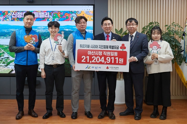 [충청뉴스큐] 아산시 공무원들이 대규모 지진피해로 고통받고 있는 튀르키예·시리아 국민을 돕기 위한 성금 모금에 동참했다.