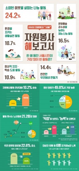 [충청뉴스큐] 서울시자원봉사센터는 2022년 한 해 29만명 이상의 서울시민이 자원봉사활동에 참여해 전년대비 10.2% 이상 증가했다고 밝혔다.