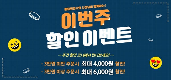 시&가맹점 공동이벤트는 시와 가맹점이 할인액을 1:1로 부담하는 주 단위 할인행사로 주문금액 3만원 미만 시 최대 4,000원, 주문금액 3만원 이상시 최대 6,000원의 혜택을 누릴 수 있다.