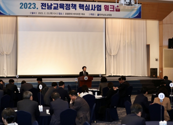 [충청뉴스큐] 전라남도교육청이 2월 23일 영암 호텔현대에서 ‘2023. 전남교육정책 핵심사업 워크숍’을 갖고 ‘데이터·디지털 기반 전남미래교육으로 전환’을 다짐했다.