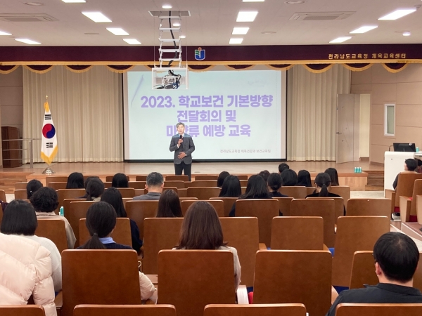 [충청뉴스큐] 전라남도교육청은 2월 24일 체육교육센터에서 안전한 교육환경 조성을 위한 ‘2023. 학교보건 기본방향 설명회’를 개최했다.