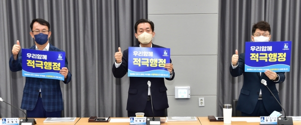 지난해 9월에는 확대간부회의에 앞서 이재준 시장, 조청식 제1부시장을 비롯한 회의 참석자, 모든 공직자가 ‘적극행정, 규제개혁 실천 다짐 운동’에 참여했다.