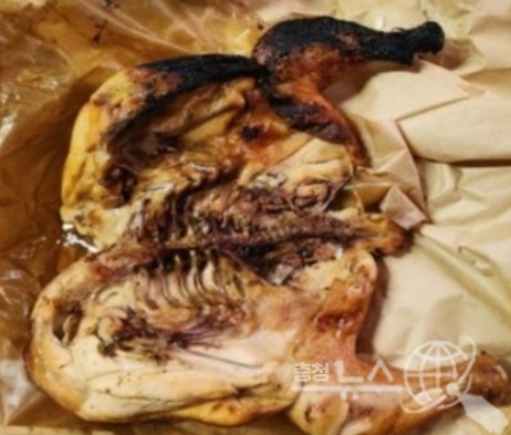 호두바보라는 아이디를 쓰는 글쓴이는 글을 통해 "어머니가 가보자고 해서 충남 예산 시장을 갔는데 국숫집은 기다리는 시간이 너무 길어 바비큐를 사왔다"며 "바비큐 통에서 꺼낼 때 너무 탄 거 같아서 바꿔 달라고 했는데 사과 즙을 바른 부위가 탄 거라서 괜찮다고 해 가져왔는데 먹으려고 포장재를 열어보니 껍데기고 뭐고 홀랑 탔다"고 주장했다.