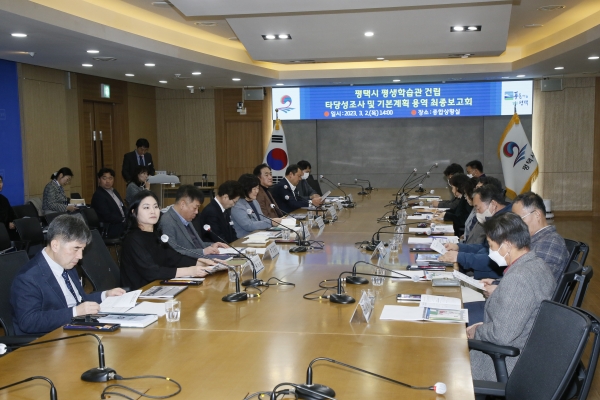 [충청뉴스큐] 평택시는 지난 2일 본관 2층 종합상황실에서 ‘평생학습관 건립 타당성 조사 및 기본계획 수립 용역 최종보고회’를 개최했다.