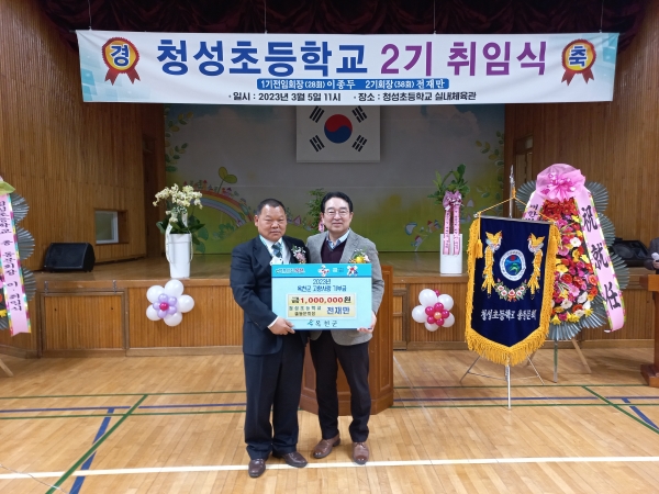 [충청뉴스큐] 청성초등학교 총동문회장으로 취임한 전재만씨가 옥천군에 고향사랑기부금 100만원을 냈다.