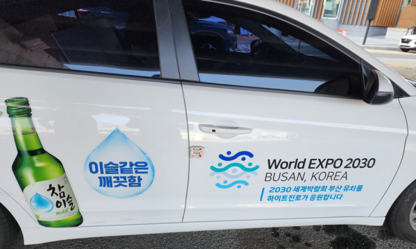 우선, 하이트진로는 올해 새롭게 선보이는 신규 영업용 차량에 2030부산세계박람회 로고와 홍보문구를 랩핑해 홍보에 힘을 보탠다.