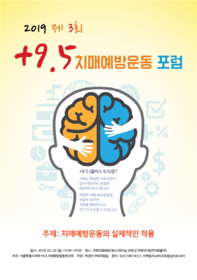 ‘2019 제3회 +9.5 치매예방운동포럼’ 에서는 치매예방운동연구회 첫 시작부터 매 회 포럼에 함께하고 있는 홍정기 교수의 “치매예방운동의 실제적인 적용” 이라는 주제로 노인 체력 향상 및 치매예방을 위한 프로그램 소개와 현장의 이야기를 전달 해 줄 계획이다. 더불어 박경미 국회의원과 이시형 한국자연의학종합연구원장이 축사로 나서 포럼 개최를 축하해 줄 예정이다.