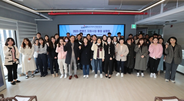 울산시는 울산정보산업진흥원과 공동으로 3월 6일 중구 복산동에 위치한 울산콘텐츠기업지원센터에서 콘텐츠기업 관계자 등 60여명이 참가한 가운데 울산시의 올해 콘텐츠 관련 사업을 설명하는 ‘2023년 콘텐츠 지원사업 통합 설명회’를 개최했다.