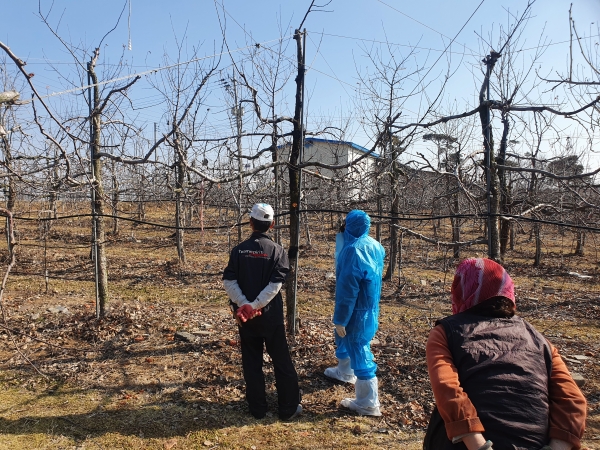 시에 따르면 방제 시기는 지역별 과수 생육상태에 따라 다르지만 현재 기상을 기준으로 3월 말에 방제 작업을 해야할 것으로 전망된다.