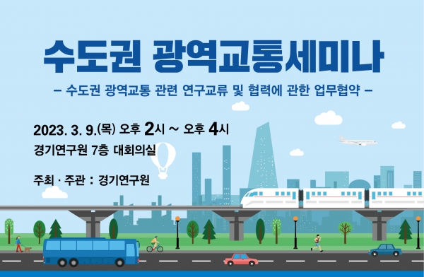 [충청뉴스큐] 경기연구원이 오는 9일 오후 2시 경기연구원 7층 대회의실에서 ‘수도권 광역교통 세미나’를 개최한다.