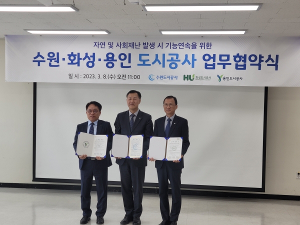 [충청뉴스큐] 화성도시공사는 전국 최초로 수원·용인도시공사와 함께 ‘재난안전협의체 업무협약’을 체결했다고 8일 밝혔다.