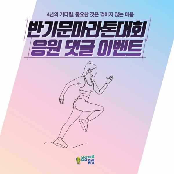 [충청뉴스큐] 음성군은 전 국민을 대상으로 ‘4년의 기다림, 반기문 마라톤 대회 응원 댓글 달기’ SNS 이벤트를 13일부터 다음 달 10일까지 진행한다.