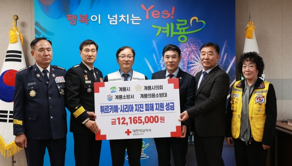 [충청뉴스큐] 계룡시는 계룡시의회, 계룡소방서 및 의용소방대와 함께 대지진으로 삶의 터전을 잃은 튀르키예 이재민을 돕기 위해 한마음으로 성금을 모아 기탁했다고 밝혔다.