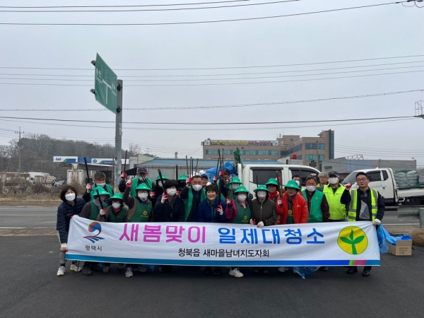 이날 새마을남녀지도자회 회원 30여명은 시립추모공원과 청북읍 행정복지센터 일대의 주요 도로 및 인도변을 돌아다니며 겨우내 쌓인 각종 생활 쓰레기와 불법 폐기물을 수거했으며 깨끗한 청북읍을 만들기 위한 주민들의 동참도 호소했다.