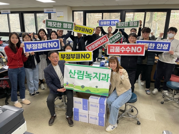 이 날 결의대회는 산림녹지과 전 직원을 대상으로 청렴한 조직문화 및 공직윤리 확산을 위해 마련했으며 청렴 구호를 외치고 청렴 실천 의지를 다졌다.