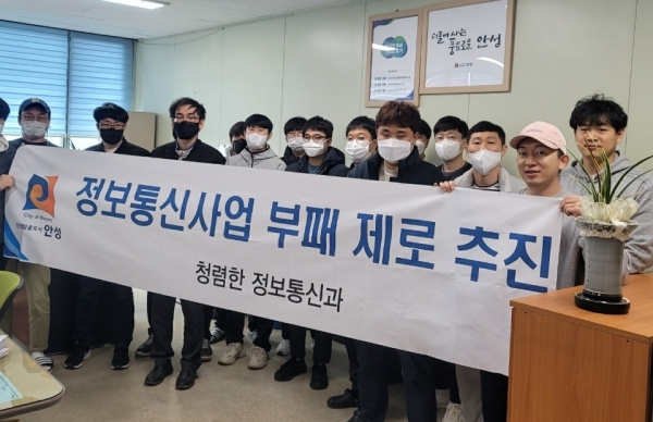 안성시 정보통신과 관계자는 “이번 ‘반부패·청렴 실천 결의대회’로 청렴에 대해 돌아보고 청렴 실천 의지를 다지는 시간이 됐다”며 “앞으로도 신뢰받는 공직 문화 조성 및 청렴 문화 의식 확산을 위해 다양한 노력을 기울일 것이다”고 전했다.
