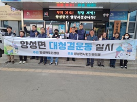 이걸필 양성면장은 “환경정화에 있어 민·관 협력의 중요성이 중요해지는 시점에 면사무소가 앞장서서 환경보전 및 올바른 쓰레기 배출문화 확산에 기여한 것에 대해 보람을 느끼며 앞으로도 관내 기관단체장 및 유관 부서와 협력해 양성면내 환경정화에 소홀함이 없도록 최선을 다하겠다”고 밝혔다.