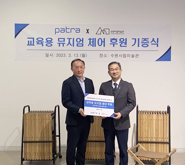 수원시립미술관 관계자는 “뮤지엄 체어 기증으로 관람객들이 더 좋은 환경에서 미술관을 편안하게 이용할 수 있을 것”이라고 밝혔으며 파트라 정한범 본부장은 “향후에도 일상 속 다양한 공간에서 파트라를 경험할 수 있는 문화 마케팅 활동을 지속해 나가겠다”고 답했다.