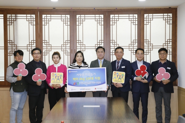 [충청뉴스큐] 한국여성농업인 평택시연합회는 지난 9일 평택시 2층 대외협력실에서 평택행복나눔본부에 백미 4㎏ 100포를 전달했다.