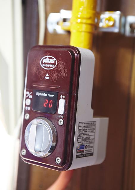 ‘타이머 콕’은 연소기의 과열을 방지하기 위해 사용자가 설정한 일정 시간이 되거나 주위 온도가 3분간 70∼80℃가 지속되면 가스 밸브가 자동으로 차단되는 기능을 갖고 있다.
