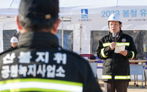 이재준 수원특례시장, 시청 공직자 60여명, 장안보건소·공원녹지사업소 공직자 26명, 4개 구청 공직자 100여명, 산불종사원 60명, 수원소방서 소방서장·재난대응팀장·의용소방대원 등 43명, 창룡문지구대 경찰 2명, 한국산불방지기술협회·드론운용업체·구급대원 11명 등 300여명이 참여한 대규모 훈련이었다.