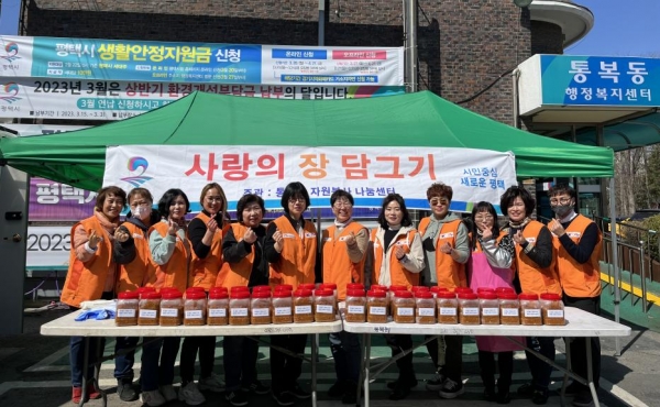 [충청뉴스큐] 평택시 통복동 자원봉사 나눔센터는 지난 14일 관내 취약계층에 직접 만든 장을 전달하기 위한 ‘사랑의 장 담그기’ 봉사활동을 진행했다.