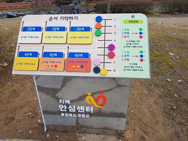 군은 지난해 주민들의 접근이 용이하고 힐링코스로 사랑받고 있는 용두공원에 놀이형 인지교구를 설치하는 등 치매 예방 및 세대 소통을 위한 다양한 활동 시설을 경험할 수 있도록 관련 시설을 확충하고 있다.