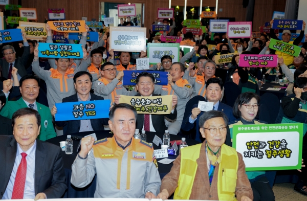 오영훈 지사는 “음주로 인한 사회적 손실 규모가 커지면 지역사회가 발전하기 어려운 구조가 된다”며 “음주로 인한 사회적 비용을 줄이고 복지·문화의 비중을 높여나가야 우리 삶이 윤택해지고 공동체가 발전할 수 있다”고 강조했다.