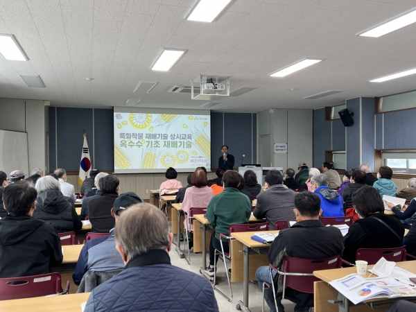 [충청뉴스큐] 아산시가 지난 16일 관내 농업인 60명이 참석한 가운데 농업기술센터에서 열린 ‘옥수수 기초 재배 기술 교육’을 성황리에 마쳤다.