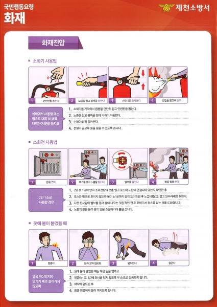 홍보물에는 소화기는 눈에 띄는 곳에 비치, 소화기 준비, 분사하기 등 상세한 설명법이 담겼다, 또한 현장에서는 소화기 분사를 ‘빗자루 쓸 듯이 뿌려야 산소 공급을 막아 불을 끌 수 있다’ 등 알기 쉽게 교육하며 참여자들의 몰입도를 높였다.